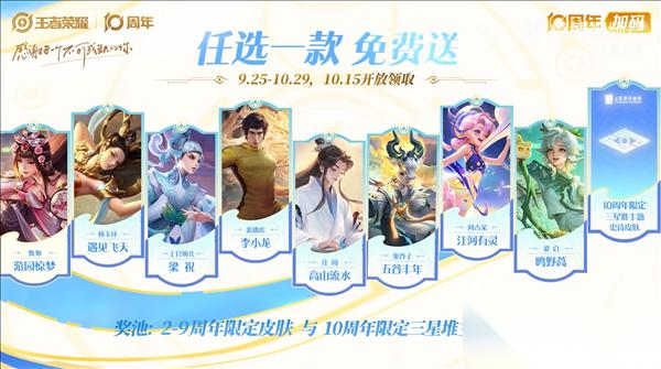 王者荣耀即将迎来十周年庆典,2025年9月25日,一系列庆祝活动将正式开启。为答谢广大玩家长久以来的支持,官方推出重磅福利,其中包含三款皮肤免费领取,以实际行动回馈十年陪伴。