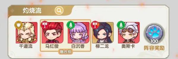 第二个流派是灼烧流,可选择千道流、马红俊、白沉香、柳二龙、奥斯卡。主c为奥斯卡,其中马红俊和白沉香能够使用出融合技能,而这一组合当中可以优先升级马红俊的凤凰啸天机与柳二龙的火龙真身,平民玩家的话,选择这个组合会有着不错的表现,真正做到低成本,高效率。