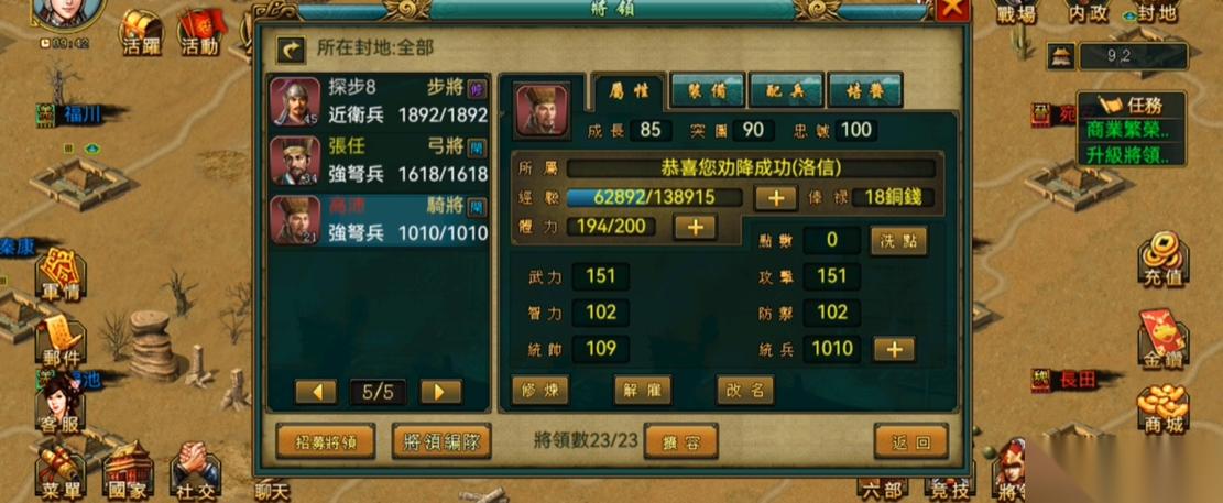 养骑兵就像带孩子,既得舍得喂经验书又得会配装备。开局送的孙策、赵云这些蓝卡别嫌弃,他们自带骑兵buff,前期比橙卡还好使。重点培养两个主力骑将,一个全加攻击当尖刀,另一个点防御当肉盾,千万别搞平均主义。每周的剿匪活动必须参加,既能爆装备图纸又能练级,记得专挑弓兵多的野地打,骑兵克弓兵就跟切菜似的。等攒出紫色马鞍和护心镜,立马给主力换上,这时候你就会发现同样兵力能多打两倍战功。